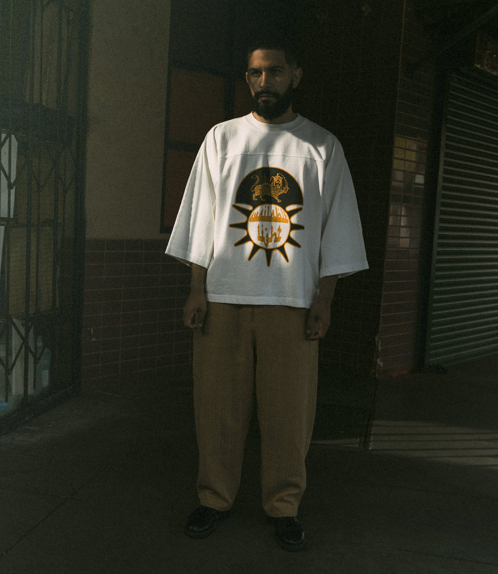 RADAMIZ IS WEARING A SIZE 1 (FITS MOST WHO WEAR SMALL THRU LARGE, WITH A BOXY OVERSIZED FIT.)